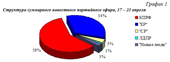 Структура суммарного новостного партийного эфира, 17 – 23 апреля