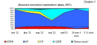 В течение 2022 г. структура новостного партийного телеэфира менялась следующим образом (Гр.3):