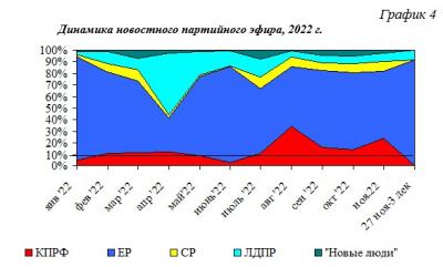 В течение 2022 г. структура новостного партийного телеэфира менялась следующим образом (Гр.4):