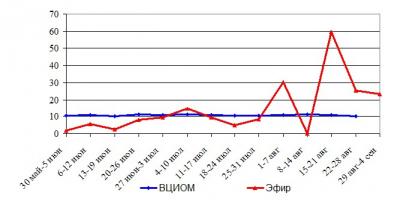 Наибольшее освещение получила отправка 100-го Гумконвоя на Донбасс, наименьшее количество эфирного времени было предоставлено для выступления Г. Зюганова в Госдуме 25 августа.