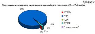 Что касается синхрона (прямой речи) партийцев, то его структура аналогична: единороссам было предоставлено 97% новостного синхрона, либерал-демократам 3%.