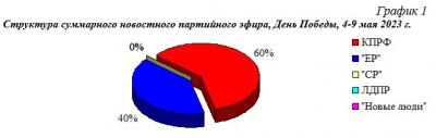 Структура суммарного новостного партийного эфира, День Победы, 4-9 мая 2023 г.