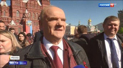 9 мая в репортаже с Парада Победы на Красной Площади в эфир вышли слова Г. Зюганова (КПРФ) и В. Васильева («ЕР»).