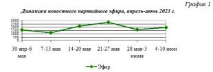 Динамика новостного партийного эфира, апрель-июнь 2023 г.