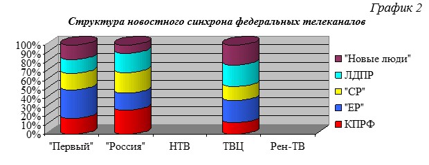 В. Васильев (ЕР») получил наибольшую долю эфира на «Первом» (32%), С. Миронов («СР») – на «России» (23%), Л. Слуцкий (ЛДПР) и А. Нечаев («НЛ») - на ТВЦ (24 и 23% соответственно) (Гр.2)