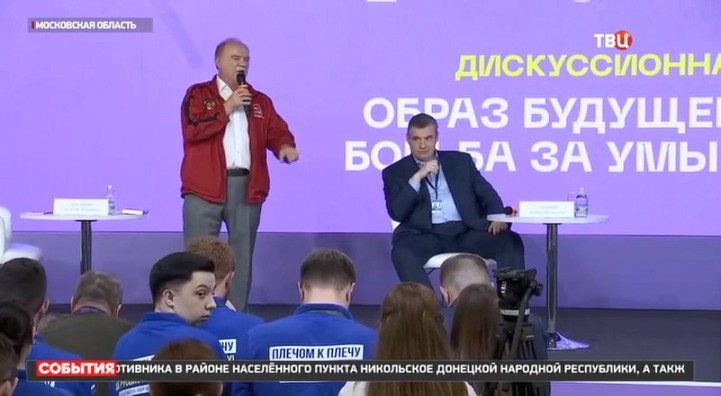 При освещении Форума «Территория смыслов» «Первый» канал выпустил в эфир два сообщения. В каждом из них выступали представители всех пяти парламентских политических партий. Основными темами стали СВО и воспитание патриотизма. В эфир оба раза были выпущены одни и те же слова Г. Зюганова: «Сейчас мы выруливаем на ту дорогу, которая позволяет готовить патриотов, граждан специалистов. Осознали, что без профтехобразования, без детских юношеских движений, без студенческих отрядов, без массового спорта невозможно сформировать гражданина и патриота».
