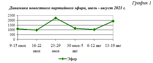 Динамика новостного партийного эфира, июль - август 2023 г.