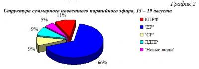 Структура суммарного новостного партийного эфира, 13 – 19 августа