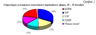 Таким образом, в период с 10 по 16 декабря было несколько крупных инфоповодов, в связи с которыми упоминались все или почти все парламентские партии: назначение даты президентских выборов, 30-летие Конституции, завершение осенней сессии Госдумы, встреча В. Путина с лидерами парламентских фракций и др.