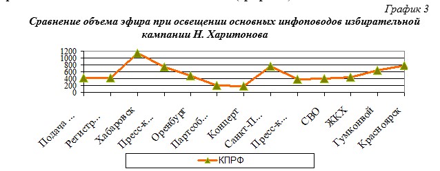 Рассмотрим, как изменялось освещение различных инфоповодов избирательной кампании кандидата от КПРФ (график 3).