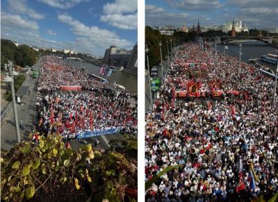 Крестный ход был использован властью для демонстрации «духовного единства», поддержки патриотической мобилизации и легитимизации союза государства с РПЦ. Вместе с тем он параллельно был воспринят как разновидность «Русского марша». Просто проведенного по иному маршруту – от Храма Христа Спасителя до Новодевичьего монастыря.