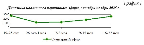 Динамика новостного партийного эфира, октябрь-ноябрь 2025 г.