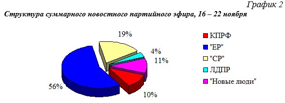 Структура суммарного новостного партийного эфира, 16 – 22 ноября
