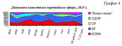 В течение 2025 г. структура новостного партийного телеэфира менялась следующим образом (Гр.4):