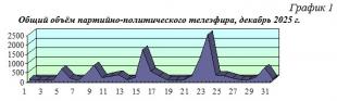 Объем новостного политического телеэфира значительно различался по продолжительности в разные дни месяца (Гр.1).