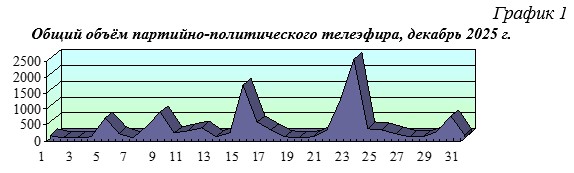 Общий объём партийно-политического телеэфира, декабрь 2025 г.