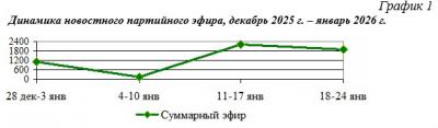 Динамика новостного партийного эфира, декабрь 2025 г. – январь 2026 г.