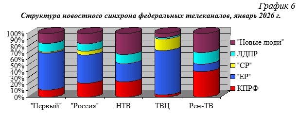 Структура новостного синхрона федеральных телеканалов, январь 2026 г.