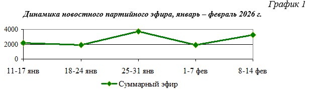 Динамика новостного партийного эфира, январь – февраль 2026 г.