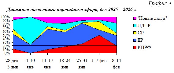 Динамика новостного партийного эфира, дек 2025 – 2026 г.