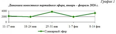Динамика новостного партийного эфира, январь – февраль 2026 г.