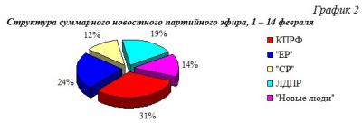 Структура суммарного новостного партийного эфира, 1 – 14 февраля
