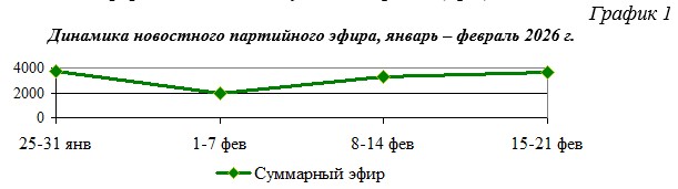 Динамика новостного партийного эфира, январь – февраль 2026 г.