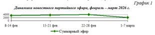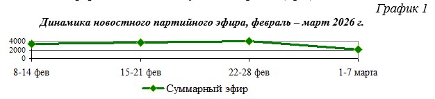 Динамика новостного партийного эфира, февраль – март 2026 г.