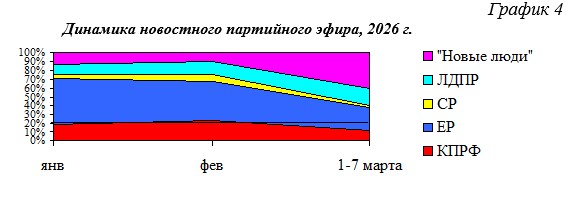 В течение 2026 г. структура новостного партийного телеэфира менялась следующим образом (Гр.4):