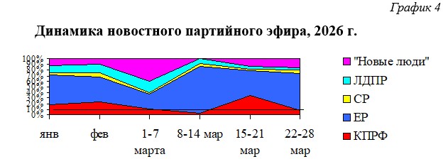 В течение 2026 г. структура новостного партийного телеэфира менялась следующим образом (Гр.4):