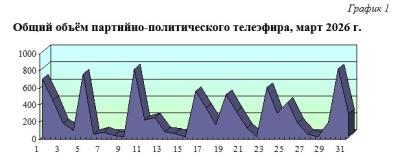 Общий объём партийно-политического телеэфира, март 2026 г.