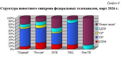 Структура новостного синхрона федеральных телеканалов, март 2026 г.