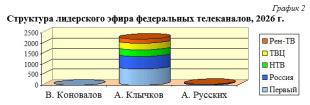 В марте 2026 года А. Русских один раз упоминался на канале «Россия 24». А. Клычков и В. Коновалов не упоминались в эфире.