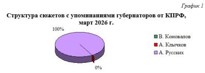 Сотрудниками сектора была проанализирована упоминаемость трёх губернаторов от КПРФ: А. Клычков (губернатор Орловской области), В.Коновалов (губернатор Хакасии) и А. Русских (губернатор Ульяновской области) (Табл.1)