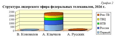 В марте 2026 года А. Русских один раз упоминался на канале «Россия 24». А. Клычков и В. Коновалов не упоминались в эфире.