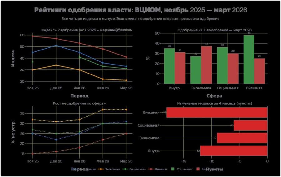 Ключевой инсайт: Социология ВЦИОМ и ФОМ больше не является инструментом демонстрации стабильности. Она стала зеркалом, отражающим глубину управленческого кризиса и подтверждающим самые тревожные прогнозы экспертного сообщества. Политический сезон лета-осени 2026 года обещает быть самым рискованным за последние 26 лет.