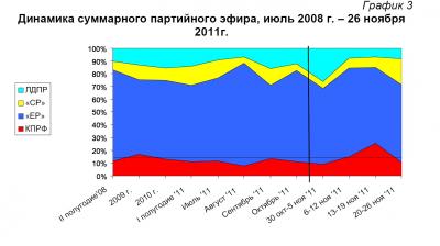 Динамика суммарного партийного эфира, июль 2008 г. – 26 ноября 2011г.