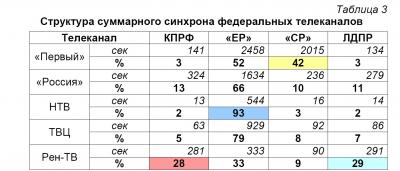 Суммарный синхрон федеральные телеканалы распределяли следующим образом (Таблица 3):