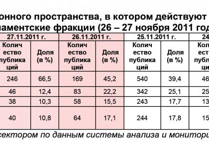 Характер освещения в информационном пространстве парламентских партий и их фракций в Государственной Думе ФС РФ (26 – 27 ноября 2011 года)
