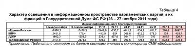 Характер освещения в информационном пространстве парламентских партий и их фракций в Государственной Думе ФС РФ (26 – 27 ноября 2011 года)