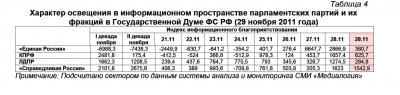 Характер освещения в информационном пространстве парламентских партий и их фракций в Государственной Думе ФС РФ (29 ноября 2011 года)
