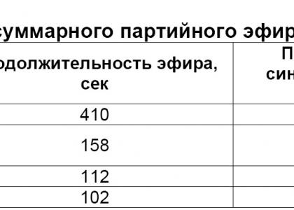 Коммунистам было предоставлено 58 секунд или 16% синхрона, что в 3 раза меньше, чем «единороссам», на 2/5 меньше, чем «эсерам» и на 3 секунды меньше, чем ЛДПРовцам. (График 3).
