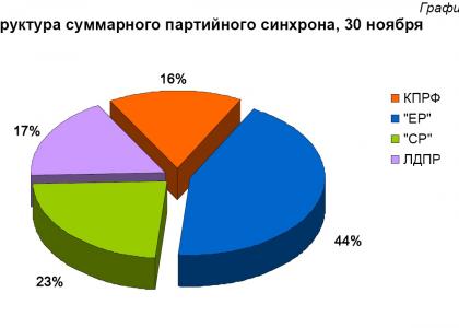 Что касается синхрона (прямой речи) партийцев, то его структура аналогична: единороссам было предоставлено 44% синхрона, ЛДПРовцам – 17%. «Справедливой России» - 23% синхрона.