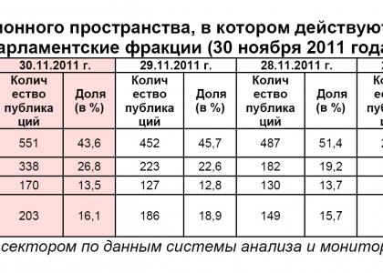 Характер освещения в информационном пространстве парламентских партий и их фракций в Государственной Думе ФС РФ (30 ноября 2011 года)