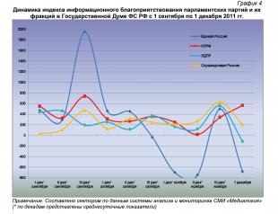 Динамический ряд, отражающий порядок наполнения медиа-потока публикациями о деятельности парламентских партий за период с 1 сентября по 1 декабря 2011 г. (график 1), позволяет заключить, что 1 декабря их показатели были близки к средним за анализируемый период значениям.