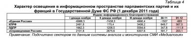 Характер освещения в информационном пространстве парламентских партий и их фракций в Государственной Думе ФС РФ (1 декабря 2011 года)