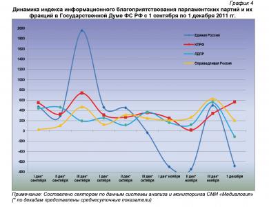 Динамика индекса информационного благоприятствования парламентских партий и их фракций в Государственной Думе ФС РФ с 1 сентября по 1 декабря 2011 гг.