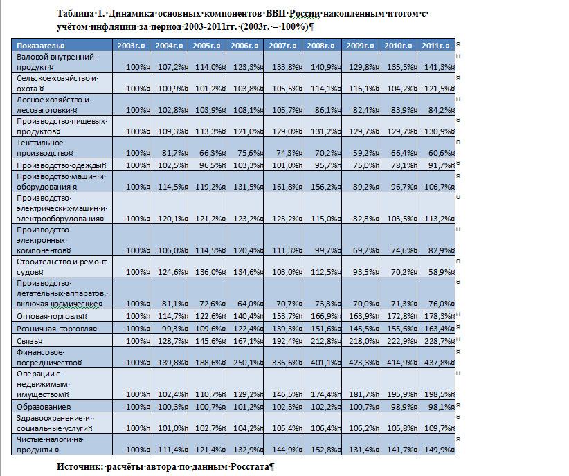 Лишь восстановительный рост в обрабатывающей промышленности, рухнувшей на 15,2% в разгар кризисного 2009г. ввиду перетока выделенной антикризисной господдержки на валютный рынок, превышал средние темпы роста по экономике в целом и составлял порядка 6,7%. Также на 12,1% выросло сельское хозяйство, обвалившееся на 10,3% в 2010г. на фоне катастрофической засухи, лесных пожаров и преступной халатности чиновников, не обращавших внимания на пожары больше половины лета.