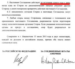 Текст самого соглашения, подписанный с американской стороны пресловутой Хилари Клинтон можно найти на сайте госдумы по ссылке. Кому лень грузить довольно внушительный файл, вот последний, ключевой лист документа: