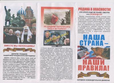 По всей стране без выходных данных и без указаний на тираж и изготовителей распространяются, так сказать, «охранительные» листовки под общим названием «Наша страна — наши правила». Эти листовки, идущие целиком и полностью в духе того, что мы однажды назвали «романтическим путинизмом» (http://kprf.ru/party-live/opinion/121973.html ), представляют собой достаточно серьезное психо-информационное оружие против русского, всех российских народов.